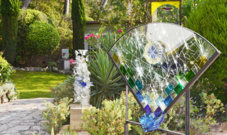 Entourés de pins, de lauriers, de paliers, de lavande, les sculptures en verre de Romain Mercier. Comme un reflet de cette nature généreuse, luxuriante des éclats de verre, glanés ci et là, récupérés, puis façonnés, peaufinés pour leur restituer leur beauté originelle. Dans l'acte de la création...