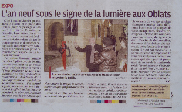Exposition au Cloîture et Patio des Oblats, Aix-en-Provence - 19 dec 2010 au 17 jan 2011
